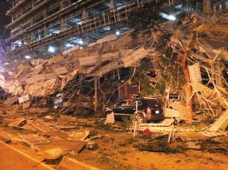 臺(tái)中市金典酒店施工鷹架倒塌。圖片來源:臺(tái)灣《聯(lián)合報(bào)》