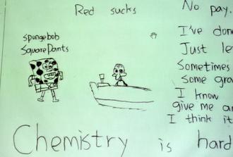 臺灣大考中心昨天舉行指考考生違規(guī)會議,考生在答卷畫上海綿寶寶的圖案。圖片來源:臺灣《聯(lián)合報》