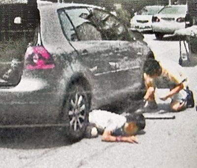 江姓老翁昏倒在馬路中央遭汽車輾過,警方趕抵時,仍卡在車底。圖片來自網(wǎng)絡(luò)