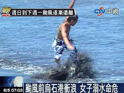 臺風前烏石港沖浪,女子溺水命危。圖片來源:臺灣“今日新聞網(wǎng)”