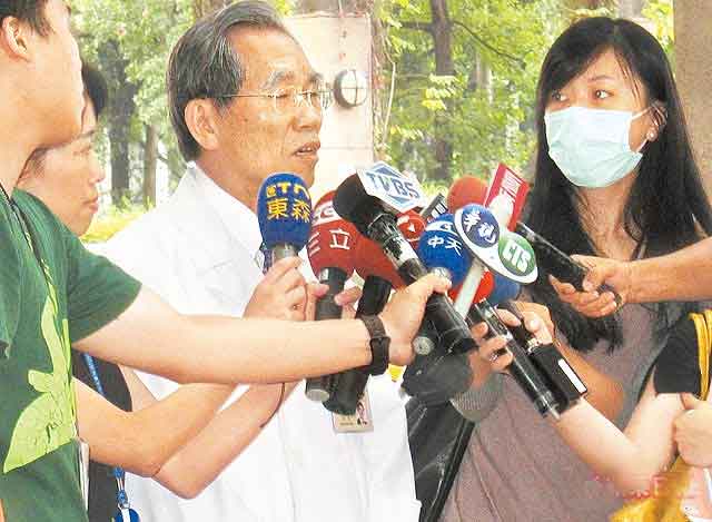 臺大醫(yī)院發(fā)生愛滋器官移植疏失,院長陳明豐(中)昨二度出面向社會道歉。圖片來自臺媒