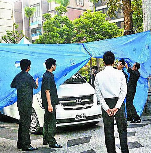 運(yùn)送林佩樺遺體的救護(hù)車從寶徠駛出,前往殯儀館。圖片來自臺(tái)灣媒體