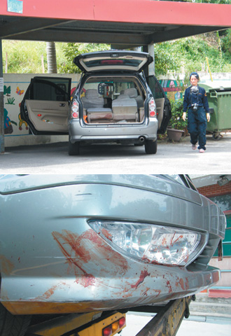 黃姓高中生駕車輾壓死者江瓊銘后,將尸體放置車后行李箱,并棄尸于沙坑小學(xué)停車棚。圖片來源:臺灣《聯(lián)合報》