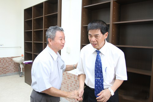 金門大學(xué)校長(zhǎng)李金振向楊志良致意。圖片來(lái)源:臺(tái)灣媒體