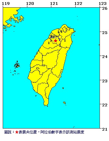 中國(guó)臺(tái)灣網(wǎng)10月5日消息 據(jù)臺(tái)灣媒體報(bào)道,今天清晨6時(shí)54分新竹發(fā)生里氏規(guī)模3.9級(jí)地震,震中位于新竹縣五峰鄉(xiāng),地震深度5.1公里。各地最大震度為桃園縣三光、新竹市2級(jí),苗栗縣獅頭山、宜蘭縣南山、新竹縣竹北市、桃園市和新北市則為1級(jí)。(中國(guó)臺(tái)灣網(wǎng) 馮江)