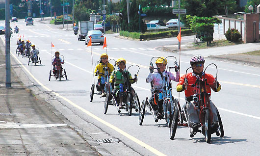 中國臺灣網(wǎng)10月9日消息 據(jù)臺灣《聯(lián)合報》報道,臺中市25位身心障礙人士,從小懷抱著“騎單車”夢想,由于雙腳行動不便無法圓夢。日前他們歷經(jīng)3個月的魔鬼訓練,將于本月15日以電輔式手搖身障自行車環(huán)臺,平均年齡超過50歲的團員,要以手代腳“游”遍美麗寶島。