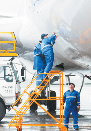 桃園航勤地勤人員花了一個(gè)小時(shí),把原飛機(jī)上的旅客行李、餐飲及貨物卸載,重新裝上接手執(zhí)勤的飛機(jī)。航機(jī)延誤了兩個(gè)多小時(shí),當(dāng)日下午四時(shí)四十五分順利起飛。