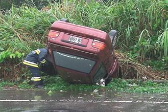 林男和小三的車輛翻覆,警消到場(chǎng)卻找不到人。圖片來(lái)源:臺(tái)灣《聯(lián)合報(bào)》