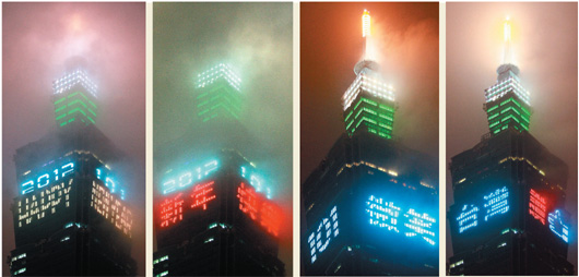 臺(tái)北101大廈昨晚為跨年煙火試燈,首次開(kāi)放九組熱句供民眾票選,當(dāng)晚究竟是微笑臺(tái)灣、幸福臺(tái)灣、臺(tái)灣加油,還是臺(tái)灣棒入選,將給大家?guī)?lái)驚喜。 (圖片來(lái)自臺(tái)灣媒體)