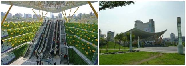 高雄地鐵中央公園站的設(shè)計理念則出自英國設(shè)計師理查·羅杰斯的巧思,其白色飛揚的雨庇搭配宛如向日葵田的綠化植栽,讓整個車站充滿活力,廣受好評,居全球最美地鐵站排行第4名。
