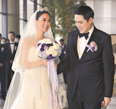 圖為臺(tái)塑長孫王泉仁(右)2010年迎娶李晶晶(左)的照片,可惜這樁豪門婚姻變調(diào),雙方都委請律師明天在家事法庭調(diào)解。圖片來源:臺(tái)灣《聯(lián)合晚報(bào)》