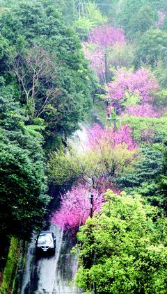 連續(xù)四天假期,全臺(tái)著名賞櫻景點(diǎn)一路塞塞塞,其實(shí)只要不隨著人群走,各地仍有不少私房賞櫻景點(diǎn),如圖中這個(gè)烏來山上,成排櫻花樹,民眾可下車在細(xì)雨中漫步賞櫻。(圖片來自臺(tái)灣媒體)
