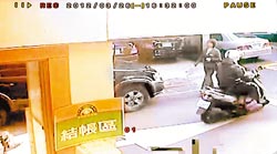 臺北市南京東路三段的臺灣中小企銀昨天下午4點多發(fā)生搶案,一名男子藏匿在樓梯間,開槍打傷保全人員后,搶走1千多萬現(xiàn)金,獨自騎乘機車逃逸。店家監(jiān)視器畫面中,疑似嫌犯穿深色衣服騎機車逃離現(xiàn)場,機車腳踏板處可見塞滿裝錢提袋。(圖片來源:臺灣《中國時報》)