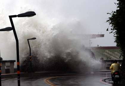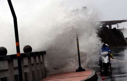 “泰利”帶來(lái)的大浪沖擊防護(hù)堤。圖片來(lái)自臺(tái)媒