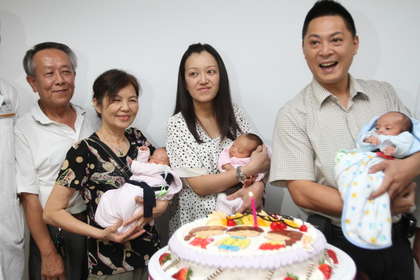 3胞胎父母臉上滿是幸福笑容,但提到近來帶3胞胎的日子,2人異口同聲地說,“就是一個字‘累’!”(中國臺灣網(wǎng) 焦源源)