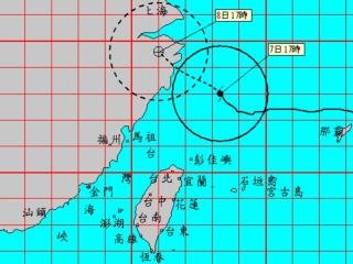 臺氣象局說,?_風(fēng)中心下午5時的中心位置在臺北的北北東方約370公里海面,以每小時12公里速度向西北西轉(zhuǎn)西北進(jìn)行,近中心最大風(fēng)速每秒35米,瞬間最大陣風(fēng)每秒45米。預(yù)測明天下午5時的中心位置在上海的南方約170公里。