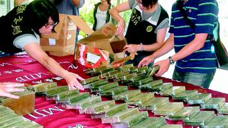 用漁船走私的200多塊海洛因磚。(圖片來源:臺(tái)灣《聯(lián)合報(bào)》)