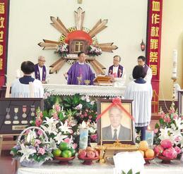 主教座堂神父浦英雄為他主持彌撒,家屬及教友參與圣道禮儀,唱圣歌追思,各界來(lái)賓吊祭,場(chǎng)面哀榮,骨灰安厝教會(huì)圣山墓園。