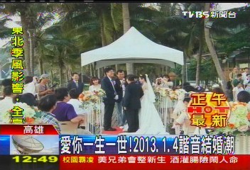 愛(ài)你一生一世,2013.1.4諧音成臺(tái)灣結(jié)婚潮。 圖片來(lái)源:臺(tái)灣TVBS新聞