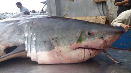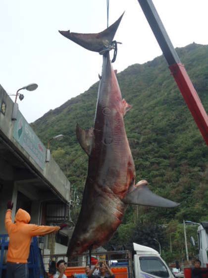 被捕獲的大白鯊。圖片來自臺媒