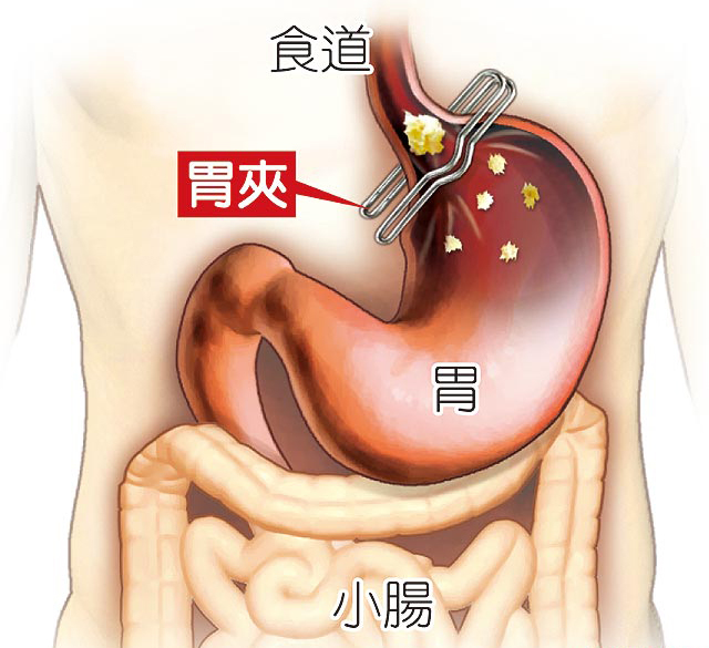 趙世晃指出,“胃夾”手術(shù)不用開腹,是以腹腔鏡進(jìn)行,從左肋骨下方的開口,將胃夾夾在胃外壁,縫4針固定,將胃部隔成上下兩胃囊,胃夾上突起約1公分直徑的孔道可供食物通過(guò)。