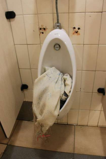 嗆校長白布條昨下午被發(fā)現(xiàn)扔在男廁的小便斗中。圖片來自臺媒