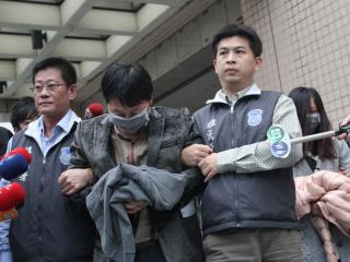 葉男(左2)開(kāi)公司吸金5億多元后逃到臺(tái)灣,臺(tái)當(dāng)局“移民署”掌握情資逮人,今日訊后遣返大陸。圖片來(lái)自臺(tái)媒