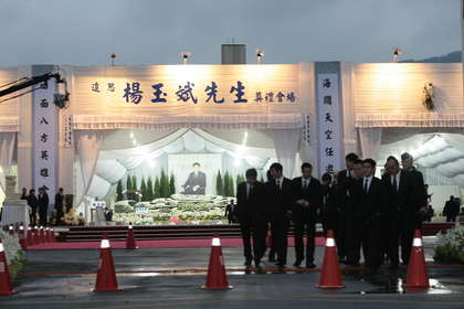 中國(guó)臺(tái)灣網(wǎng)12月23日消息 據(jù)臺(tái)灣媒體報(bào)道,臺(tái)灣四海幫前幫主楊玉斌11月3日意外猝死,今日他的遺體告別式在南港舉辦。警方不敢大意,早上7時(shí)許就部署警力在現(xiàn)場(chǎng)監(jiān)控,并祭出遠(yuǎn)程監(jiān)控系統(tǒng),實(shí)時(shí)將畫面回傳。10時(shí)進(jìn)行公祭時(shí),警方估計(jì)現(xiàn)場(chǎng)超過萬人為楊玉斌送行。
