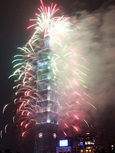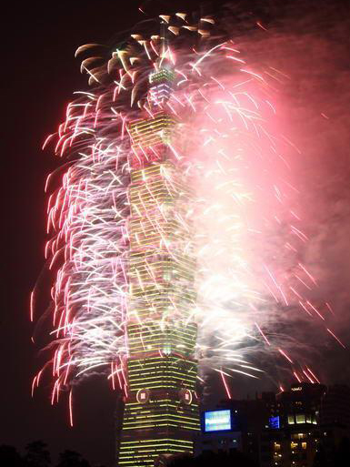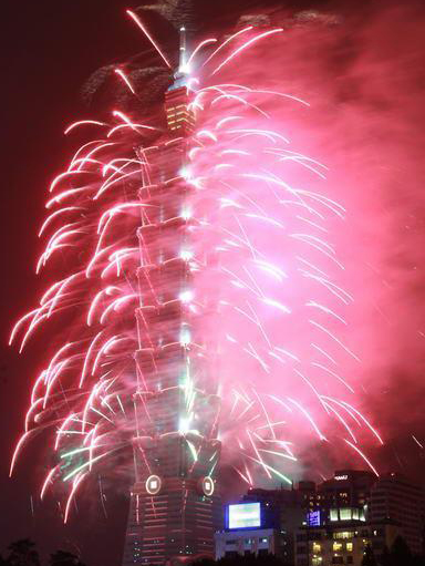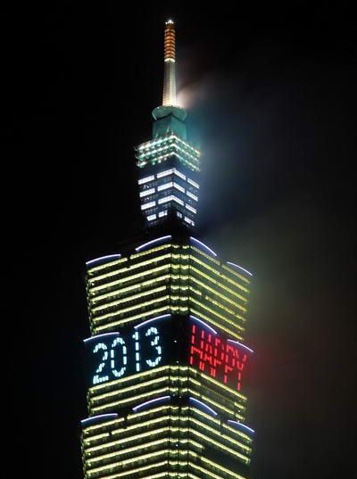 和去年一樣長達188秒的2013臺北101跨年煙火秀精彩登場,估計有85萬人到場觀賞。圖片來自臺灣今日新聞網(wǎng)