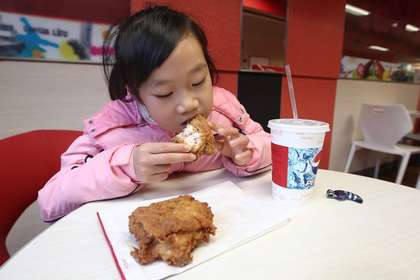 小孩子在吃炸雞,圖非當(dāng)事人。(圖片來自臺媒)