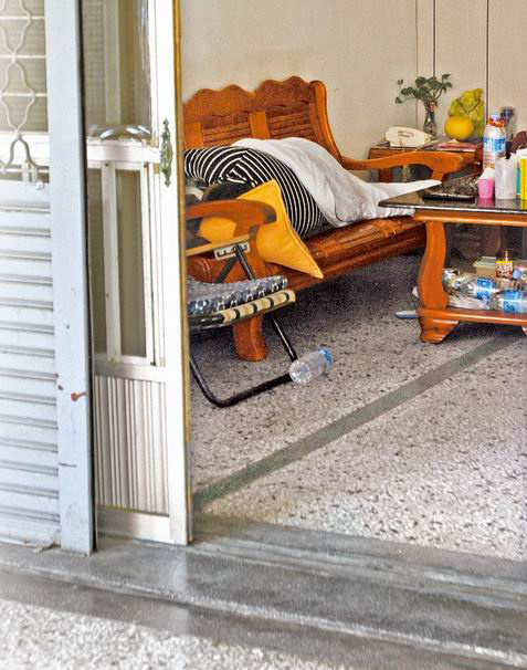 曾建隆躺在一樓木椅上睡覺,卻因哥哥燒炭,一氧化碳中毒身亡。(圖片來自臺媒)