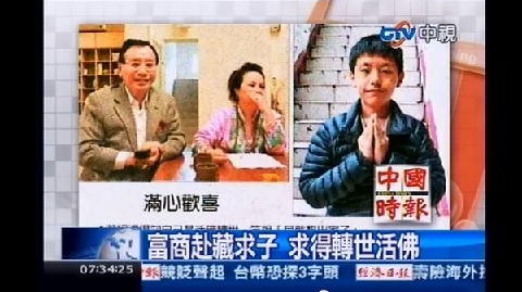 中國臺灣網(wǎng)4月8日消息 據(jù)臺灣今日新聞網(wǎng)報道,臺灣富商蔡友文、尤黎珠夫婦在香港和東南亞經(jīng)商致富,兩人求子多年不可得。夫婦兩人到一家婦產(chǎn)科看診,醫(yī)師告知夫人尤黎珠不可能再懷孕,因此斷了求子的念頭。夫婦倆1999年赴西藏大昭寺在佛前發(fā)愿,希望得子,并許愿若得子將會供養(yǎng)兒子出家弘揚佛法。沒想到兩人返臺后,尤黎珠竟懷孕了,而且在經(jīng)80歲的瑪貢仁波切認定,今年已經(jīng)13歲的蔡經(jīng)濠是活佛轉(zhuǎn)世。
