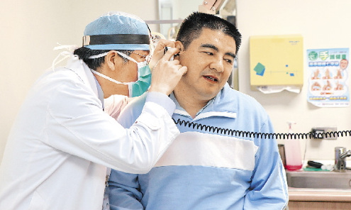陳光標(biāo)1日在臺(tái)灣接受健檢,圖為耳窺檢查。(圖片來源:臺(tái)灣《旺報(bào)》)
