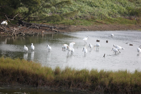 30多只黑面琵鷺暫時(shí)停留在臺(tái)北關(guān)渡濕地,等待繼續(xù)北返。(圖片來(lái)自臺(tái)灣“中廣新聞網(wǎng)”)