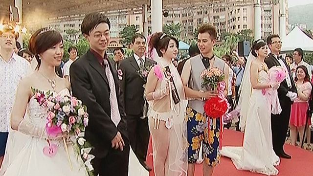 聯(lián)合婚禮上新娘比基尼吸睛(圖片來自臺媒)