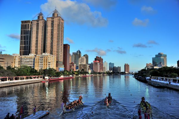 今年高雄市的端午龍舟賽依循以往在愛河水域以及林園區(qū)的中蕓漁港兩地同時舉行。今年愛河龍舟賽參賽隊伍更創(chuàng)新高,共134支隊伍、超過3000人參賽。參賽隊伍聚集在河畔整隊歡呼,展現(xiàn)旺盛氣勢,而三度組隊來臺參賽的姐妹城市西雅圖,也以一首《高山青》為隊員壯聲勢。