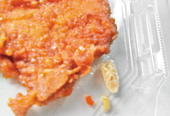 臺鐵目前每天賣出2.4萬個,較去年成長20%,不少旅客熱愛買臺鐵便當(dāng)后搭高鐵。昨天一名旅客購買80元(新臺幣)的臺鐵便當(dāng),由臺中搭乘高鐵去臺北,卻在便當(dāng)內(nèi)發(fā)現(xiàn)白色昆蟲尸體,約有拇指長。(中國臺灣網(wǎng) 朱煉)