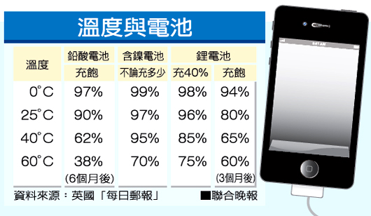 溫度與電池。圖片來源:臺灣《聯(lián)合晚報》