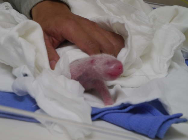 小熊貓寶寶眼睛尚未張開,有如人類的新生兒。(圖片來自臺媒)
