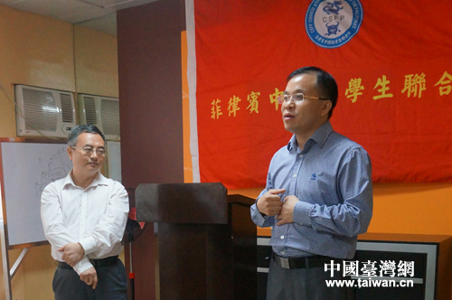 沈自成總領(lǐng)事和部分菲律賓高校中國留學(xué)生會負責(zé)人合影。(中國臺灣網(wǎng) 發(fā))