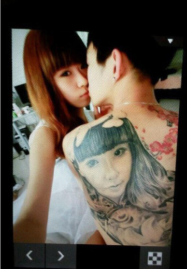 臺灣男子把女友臉龐刺在背上。(圖片來自臺媒)
