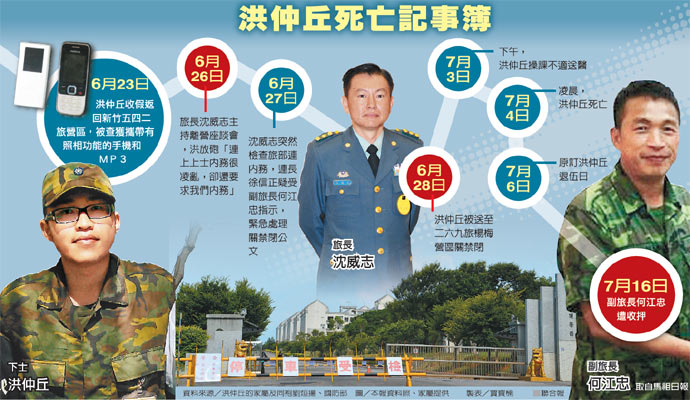 中國臺(tái)灣網(wǎng)7月17日消息 據(jù)臺(tái)灣《中國時(shí)報(bào)》報(bào)道,臺(tái)灣陸軍下士洪仲丘疑因副旅長何江忠施壓,鑄成退伍前被關(guān)禁閉枉死,引起島內(nèi)全民憤慨!繼作家九把刀贊助經(jīng)費(fèi)號召網(wǎng)友20日到臺(tái)“國防部”抗議后,臺(tái)中弘光科技大學(xué)研究生蔡克斯十六日也自掏腰包,買客運(yùn)車票邀網(wǎng)友北上聲援。