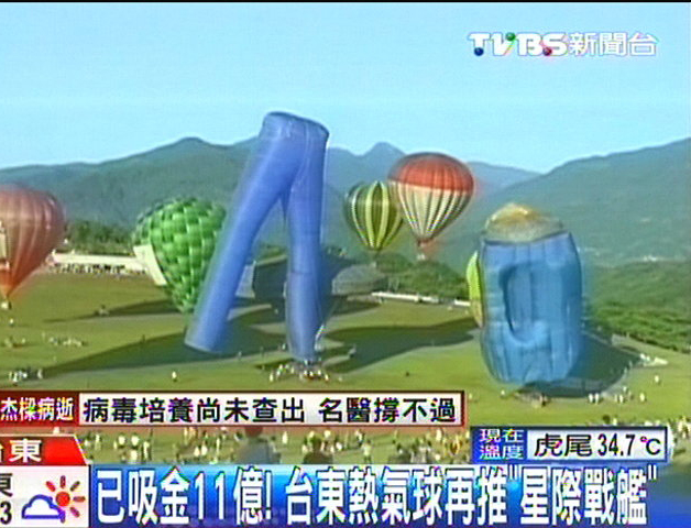 中國臺灣網(wǎng)8月5日消息 據(jù)臺灣TVBS電視臺報(bào)道,臺東熱氣球嘉年華,活動一波接一波,從6月到現(xiàn)在已經(jīng)吸引70萬人次來造訪,帶來11億(新臺幣,下同)觀光財(cái),主辦單位今天又推了新的熱氣球,希望可以突破去年的88萬人次。