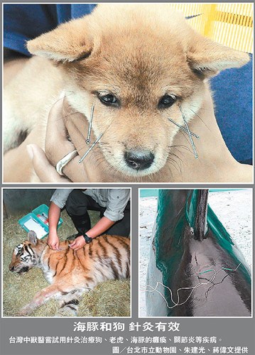 臺北市立動物園2008年起嘗試使用中醫(yī)療法,、黑猩猩、狼狗都接受過針灸;野柳海洋世界更早,20多年前就針灸海豚,治愈率高達5成。
