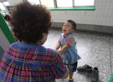 據(jù)臺(tái)灣媒體報(bào)道,今天是臺(tái)灣的幼兒園開學(xué)日,不少小朋友上學(xué)初體驗(yàn),都因?yàn)榕律ぴ诎謰屔磉,只要家長一離開,就哇哇放聲大哭。