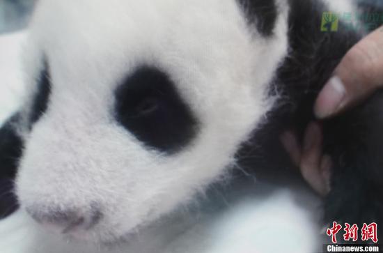 8月17日早晨,贈(zèng)臺(tái)大熊貓的幼仔“圓仔”兩只眼睛都已睜開(kāi)一半。圖為通過(guò)臺(tái)北動(dòng)物園內(nèi)部視頻拍攝的圓仔睜開(kāi)眼睛的照片。中新社發(fā) 劉震 攝