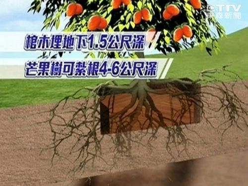 據(jù)臺灣東森電視臺網(wǎng)站報道,臺灣臺南玉井以芒果聞名,現(xiàn)在卻傳出有1%的愛文芒果是種在公墓上,而且有些還直接種在墳頭上,棺木內的遺體腐化后,尸水滲透進土壤后,間接被果樹吸收,消費者等于吃到尸肥種出的芒果。
