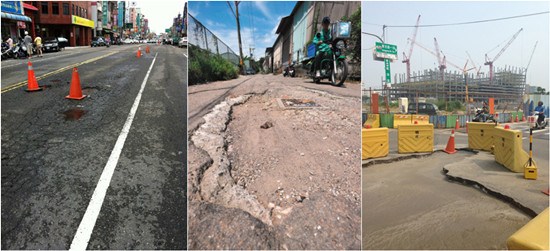 雨已經(jīng)停了好幾天,但各縣市抱怨路不平、害輪胎破害人跌傷的案件頻傳。桃園縣議員李家興則說,桃園縣馬路不平的程度,已經(jīng)出名,外縣市坐車或開車的民眾,只要發(fā)現(xiàn)車子開始巔簸就知道“桃園縣到了”。