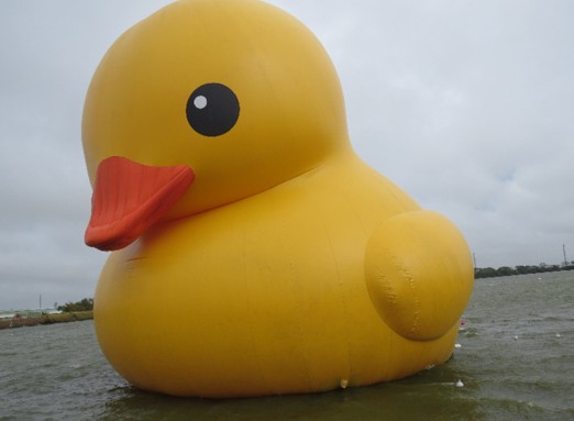小黃鴨快充飽氣的模樣。(臺媒圖)