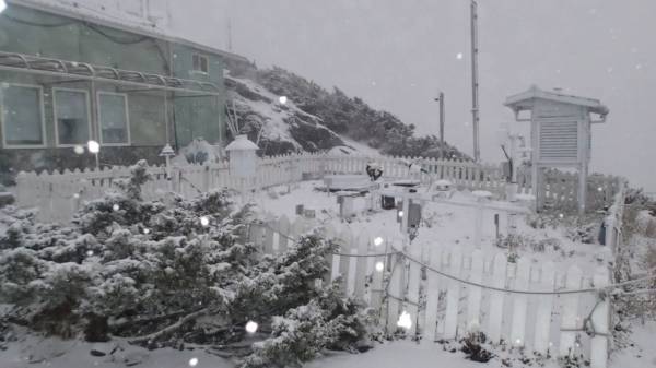根據(jù)玉山北峰氣象站資料,玉山北峰積雪已經(jīng)達(dá)到6公分。(圖來(lái)自臺(tái)媒)